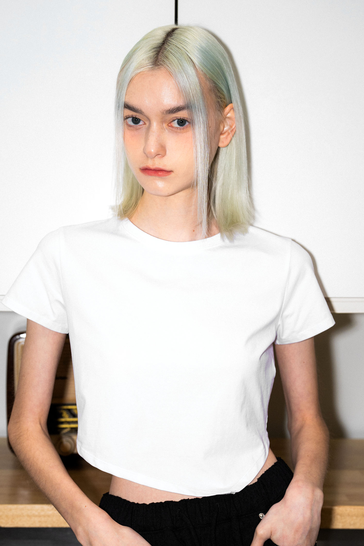 WOMAN 언발란스 실켓 크롭티 [WHITE]