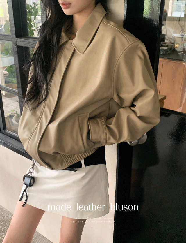 [자체제작/delight made] 오버핏 레더 블루종/레더점퍼