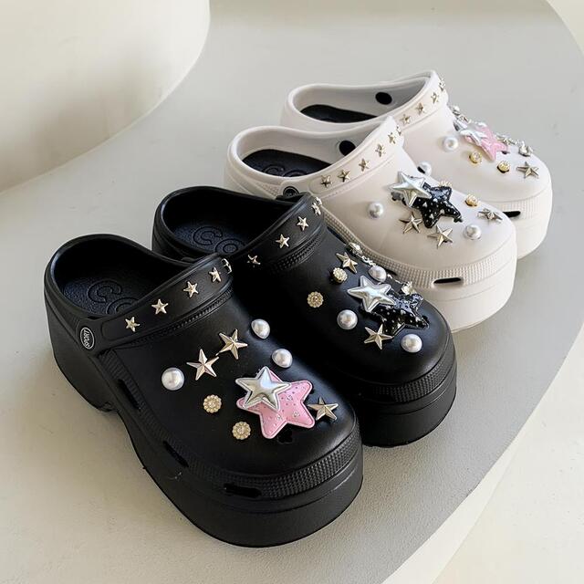 스톤 EVA 별무늬 장식 통굽 후프 슬리퍼(7cm)