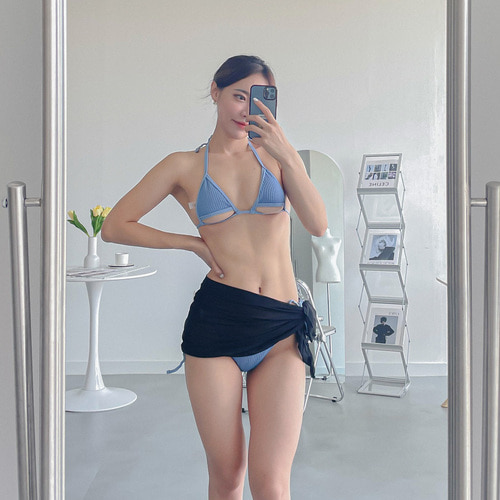 [온플리크] 언더붑 골지 스트링 섹시 3pcs 비키니