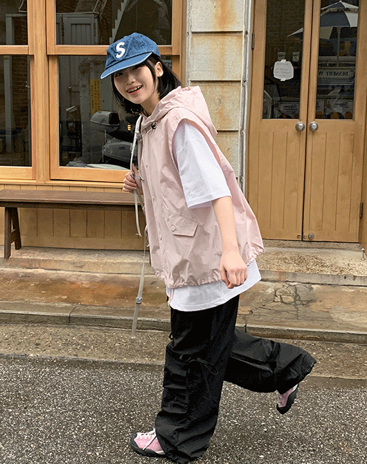 [2천장돌파][unisex] 요아티 투웨이 스트링 후드 조끼 (4color)