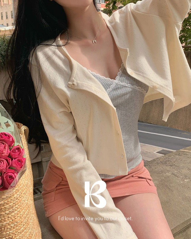 [당일출고][MADE/여리핏!]플라워 펀칭 크롭 가디건