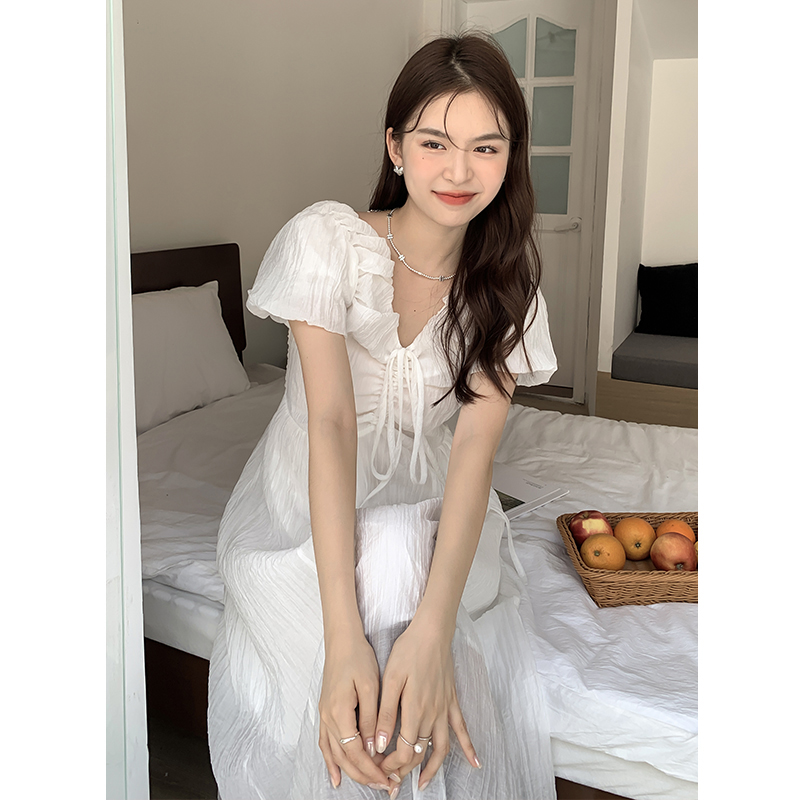 여름 썸머 벌룬 소매 뒷트임 러블리 원피스 반소매 쉬폰 나들이룩 소풍 휴양지 리조트 바캉스 비치웨어