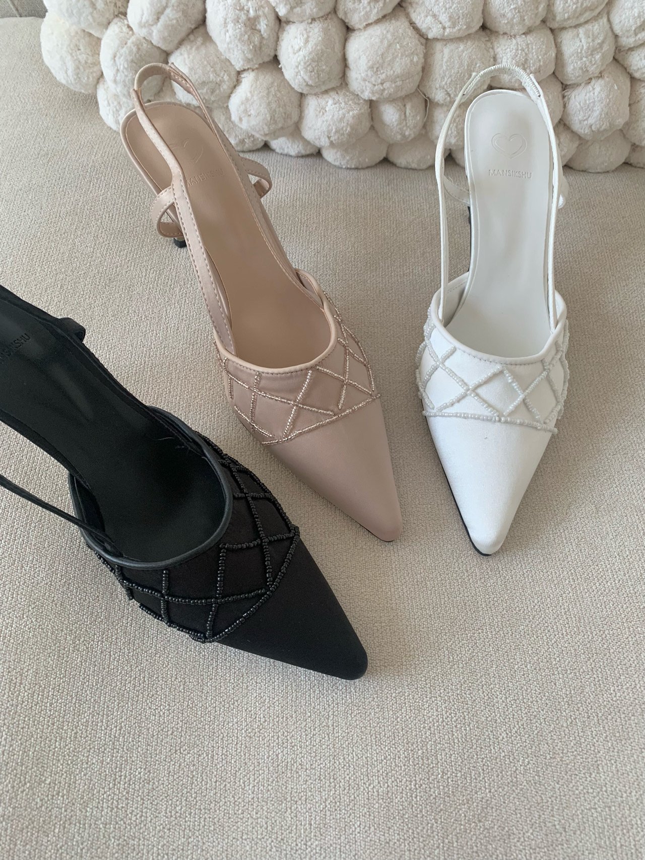 [최저가💖md강력추천💖] 크림 스틸레토 비즈 슬링백힐 하이힐 7cm
