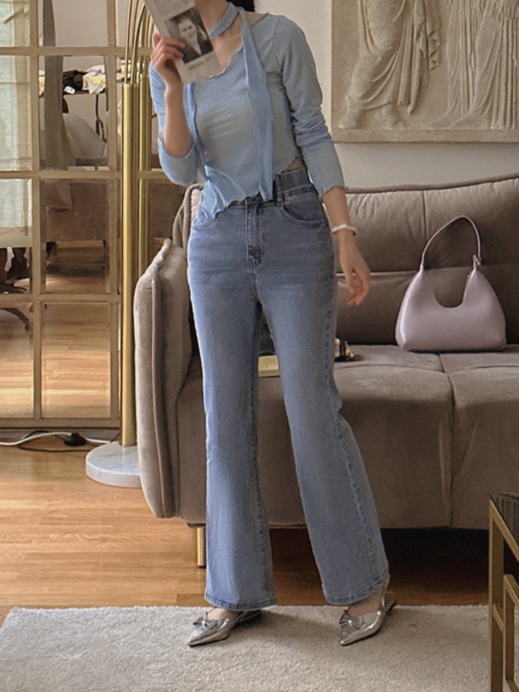 [25-36] [숏/기본/롱] 포츠키 속밴딩 스판 투버튼 세미 부츠컷 데님 팬츠 청바지( 신상-봄-데일리룩-데이트룩-여행룩-빅사이즈-36사이즈-하객룩-출근룩-자체제작-빅사이즈데님-빅사이즈청바지-부츠컷데님-밴딩팬츠-스판팬츠 )