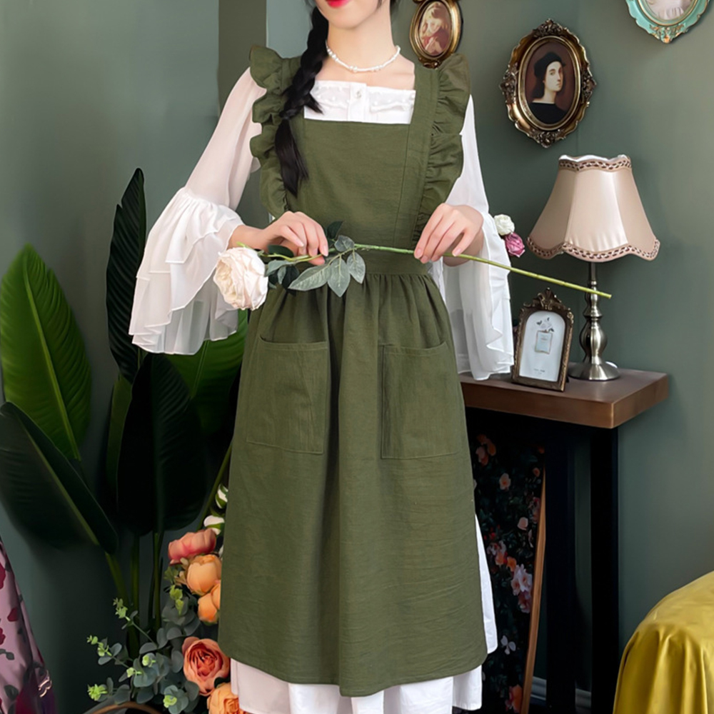 메이리앤 고품질 코튼 셔링 프릴 다용도 원피스 에이프런 예쁜 앞치마