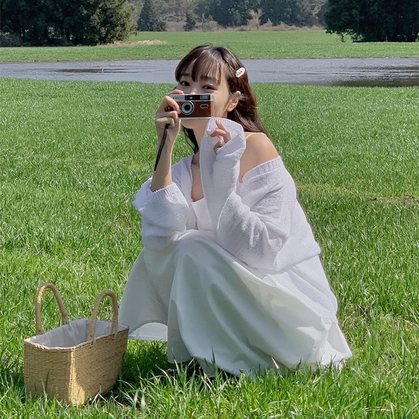 [살안타템][MADE] 라벨리 브이넥 루즈핏 세미크롭 메쉬 니트 가디건(44~100) (신상-간절기코디-데일리룩-캐주얼룩-데이트룩-출근룩-살안타템-장마룩-장마템-살안타가디건-살안타니트)