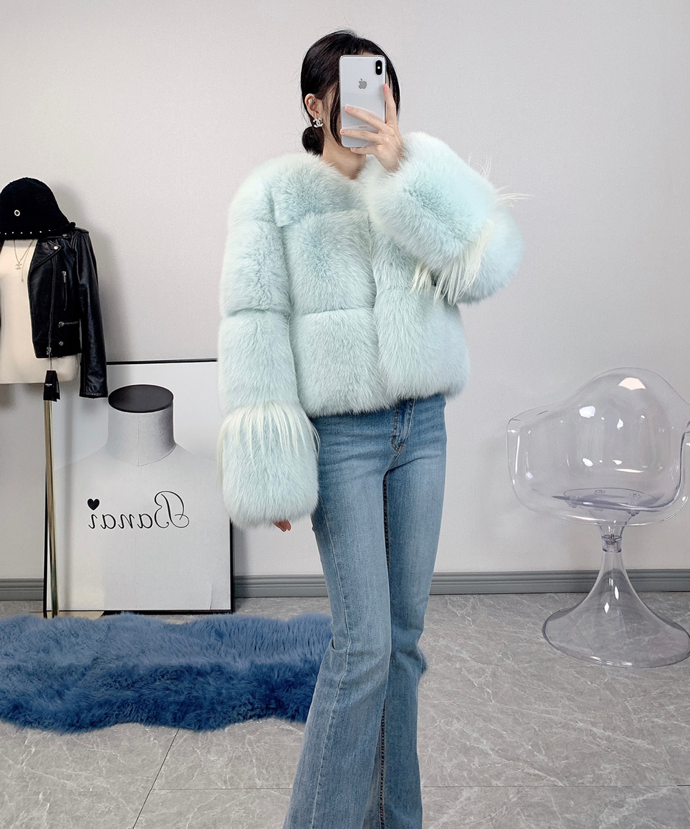 [바나이 BANAI] 핀란드 수입 민트컬러 폭스퍼 여성 풍성한 겨울 퍼자켓