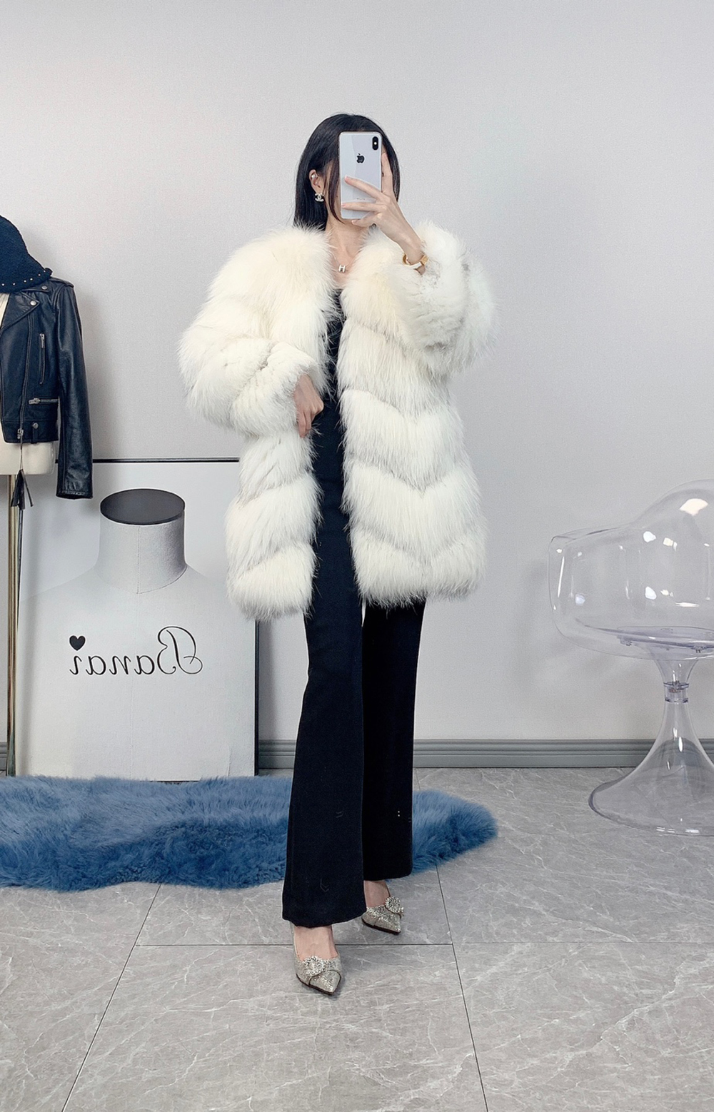 [바나이 BANAI] 사가폭스퍼코트 화이트 천연컬러 롱헤어 럭셔리한 여성겨울자켓