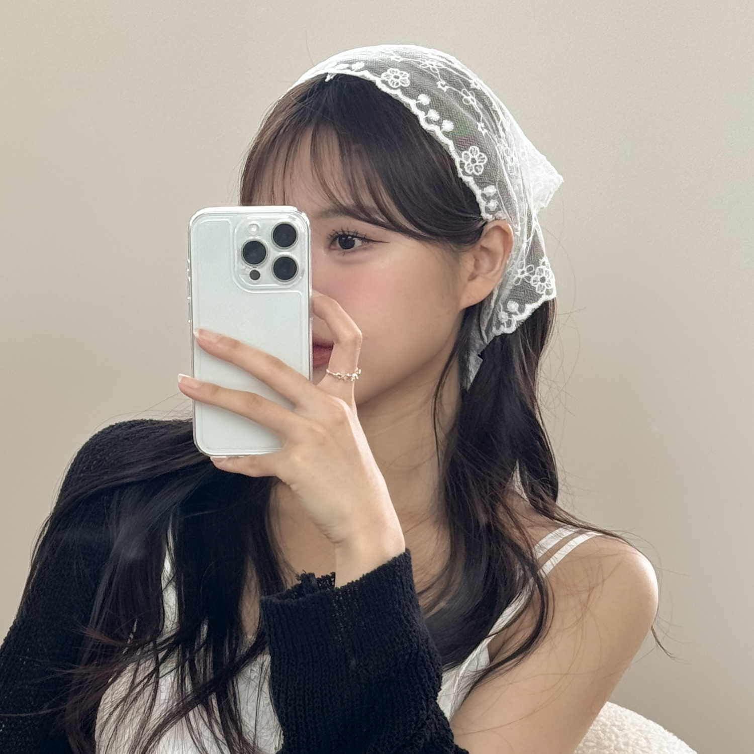 물결 플라워 레이스 스카프 헤어 두건