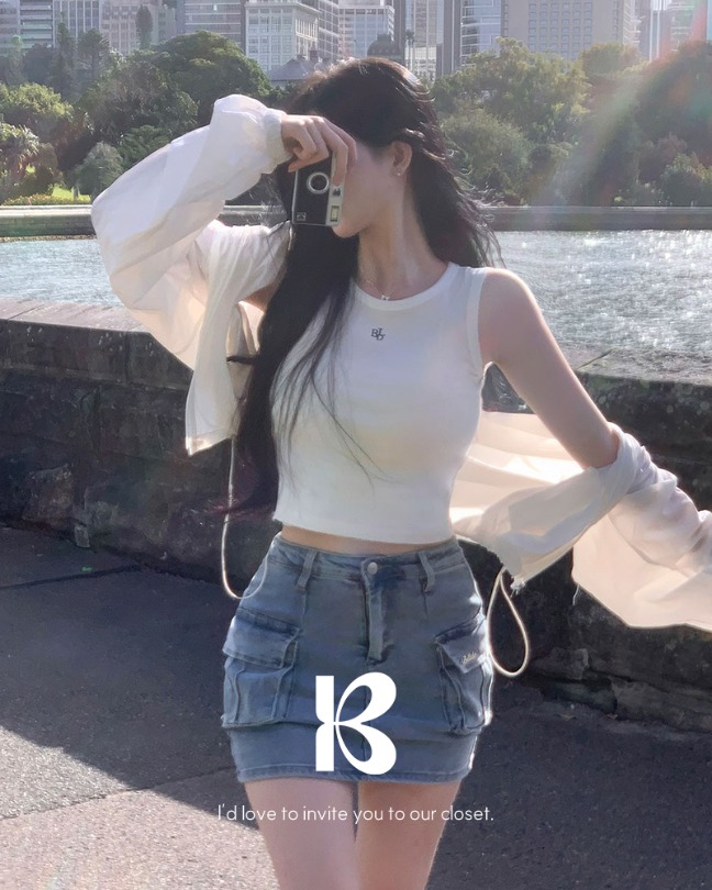 [당일출고]1+1할인[MADE/데일리]워닝 골지 크롭 자수 나시&슬리브리스