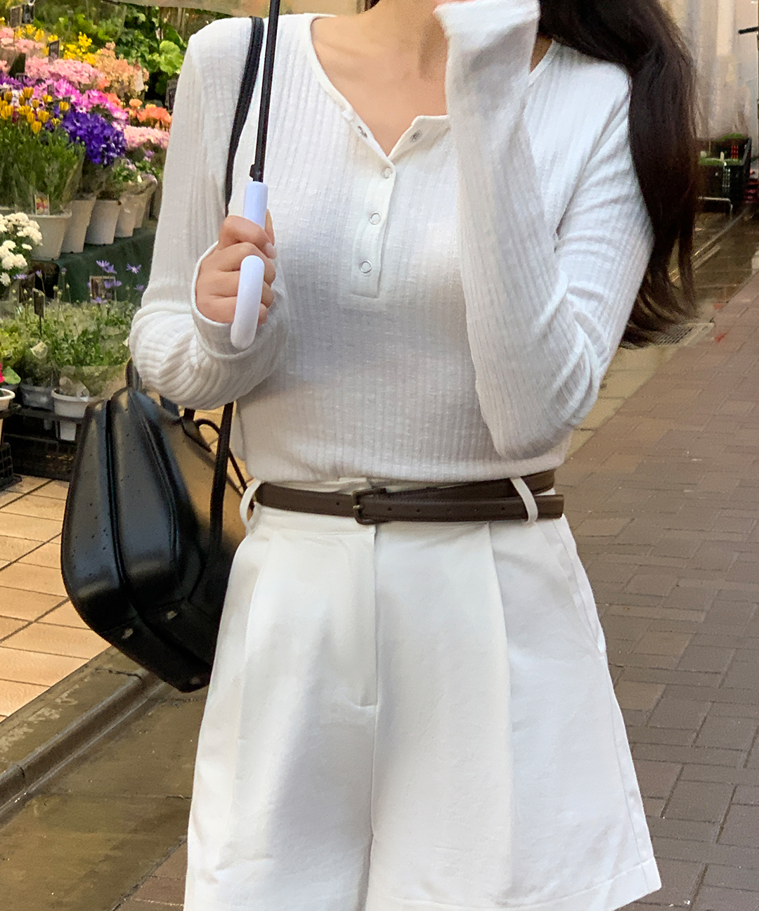 [MADE]이즈 데일리 버튼 골지 긴팔 티 (S-XL/기본티/이너티/긴팔티/데일리룩/출근룩/개강룩/레이어드/골지티)