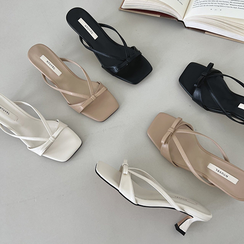스트랩 리본 미들힐 여자 슬리퍼힐