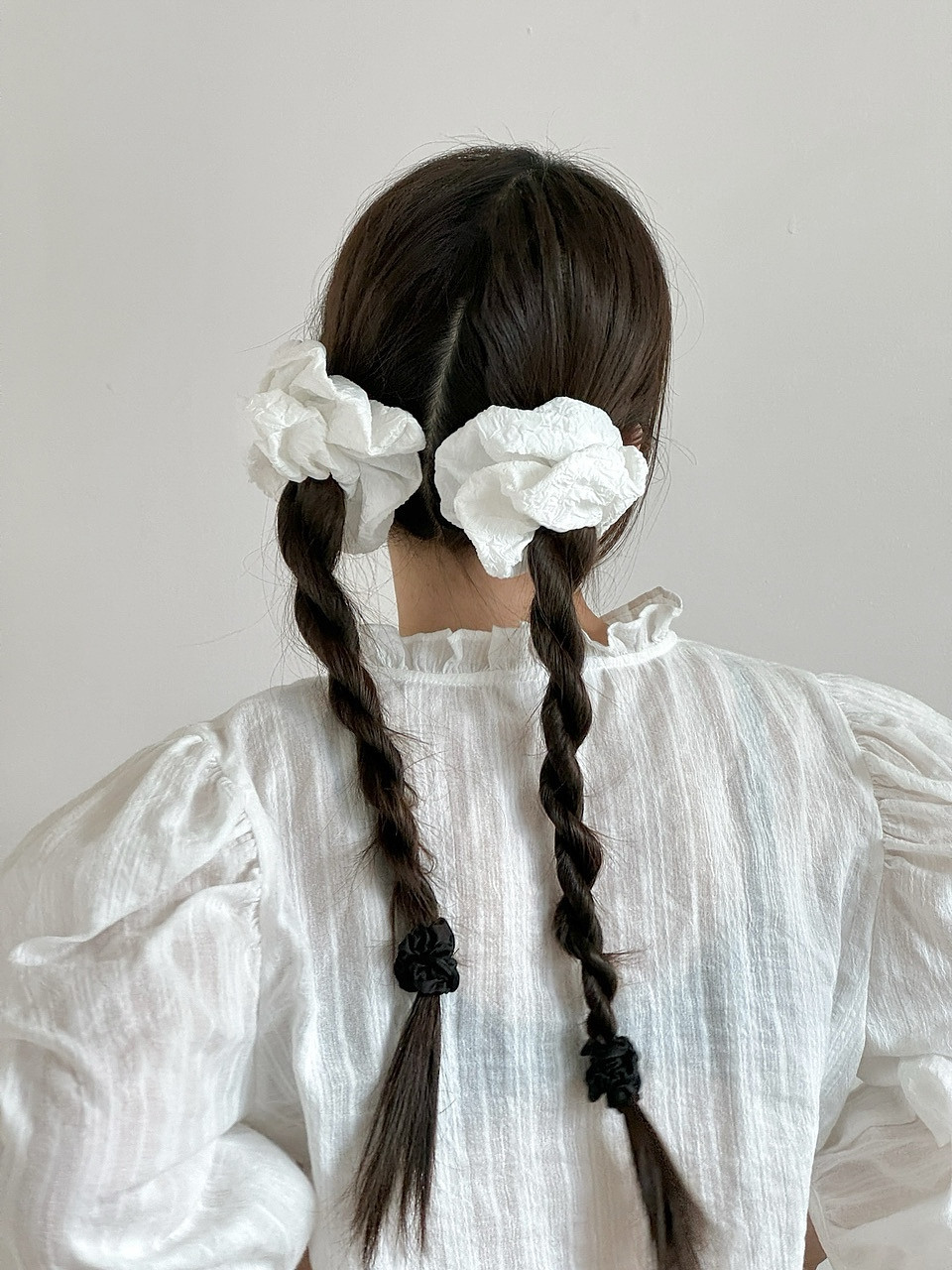 Best)1+1 크링클 곱창밴드 헤어 스크런치 세트 머리끈 블랙 화이트