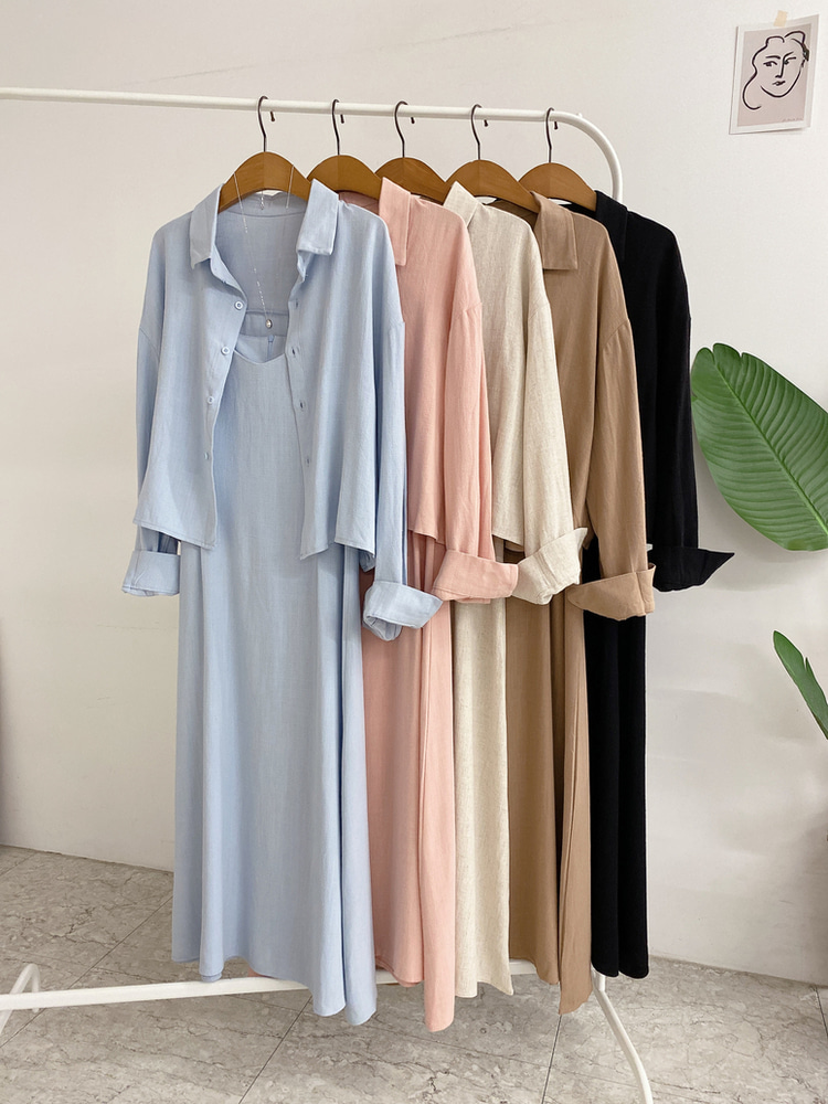 [세트] 쿠른 린넨 셔츠 끈조절 나시 롱 원피스(5color)