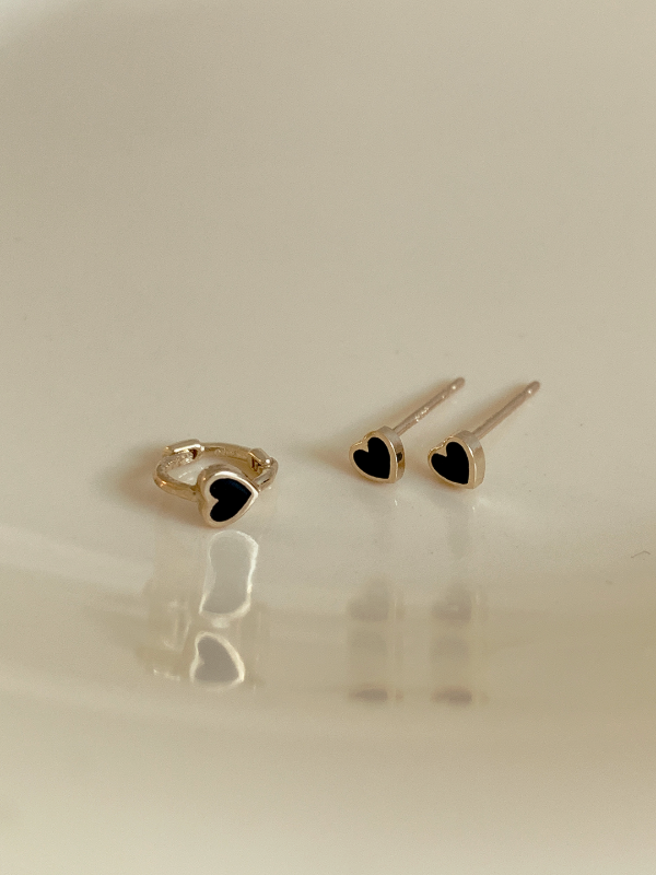 [겨울하객룩🖤] 10k 14k 미니 블랙 하트 귀걸이 2종 데일리 귓바퀴 링 피어싱