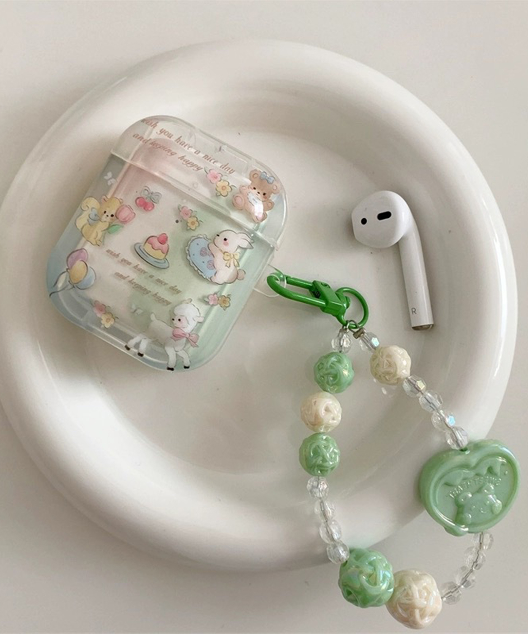 에어팟 리본 동물의 숲 투명 그린 키링 스트랩 실리콘 젤리 유니크 키치 하이틴 귀여운 심플 특이한 커플 우정 선물 이어폰 애플 케이스 에어팟케이스 1세대 2세대 프로 3세대 프로2