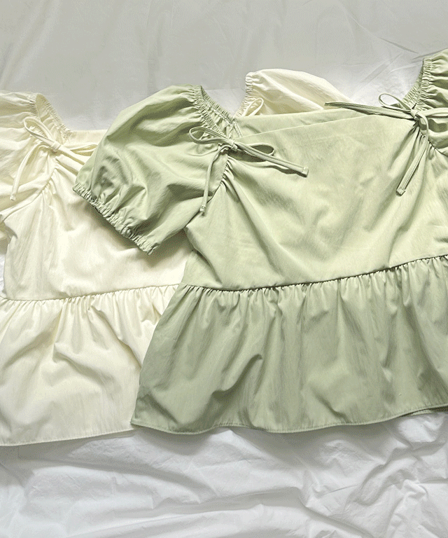 [러블리/국내제작] 달링 오프숄더 가능 리본 퍼프 블라우스(2color) 여름 반팔 반소매 캠퍼스룩 데일리 크롭 오프숄더