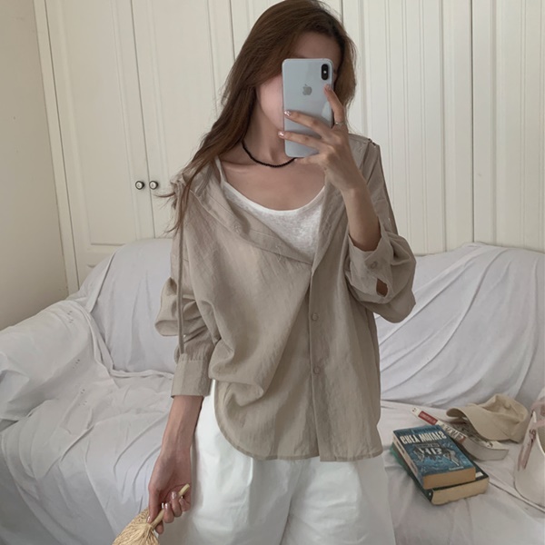 오버핏 여름 시스루 후드 셔츠 남방 2K109944