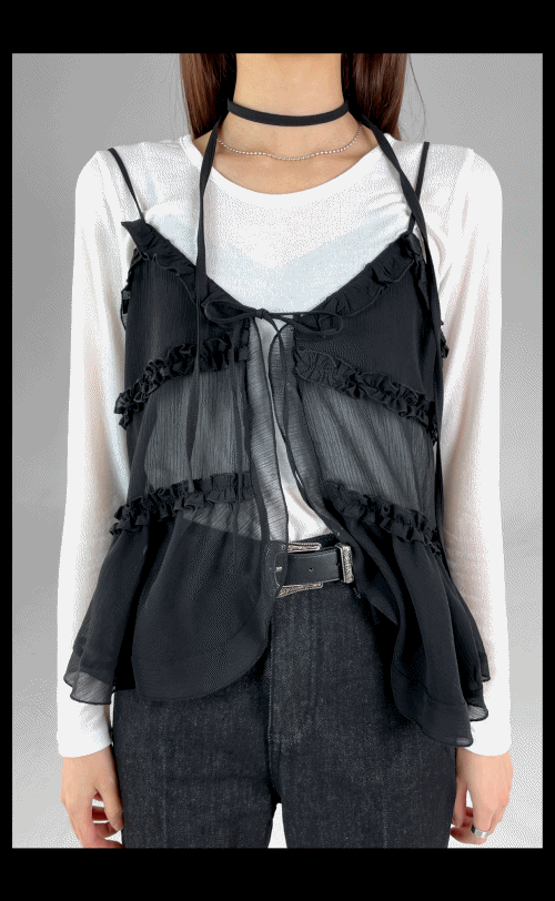 루시아 쉬폰 시스루 뷔스티에 프릴 레이어드