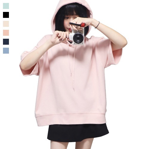 여자 봄 여름 반팔 박스 후드 티셔츠 데일리 6color