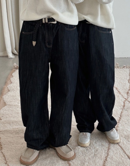 (UNISEX) 제넌 논페이드 생지 와이드 데님 팬츠