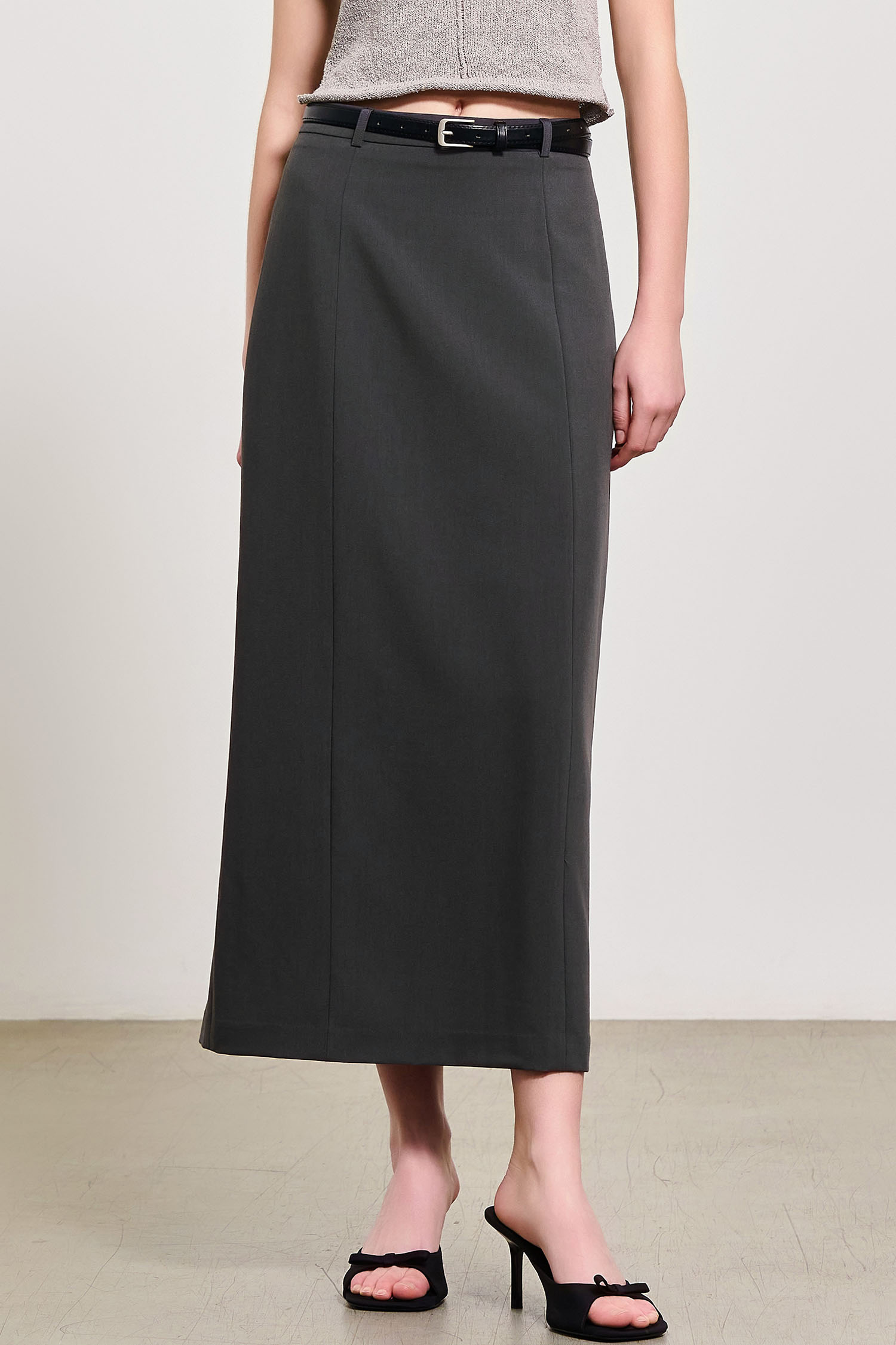 WOMAN 벨티드 H라인 롱스커트 [CHARCOAL]