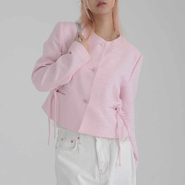 [트위드 자켓] 모어 핑크 트위드 리본 자켓- 2col (하객룩/졸업룩/노카라/라운드/발렌타인)
