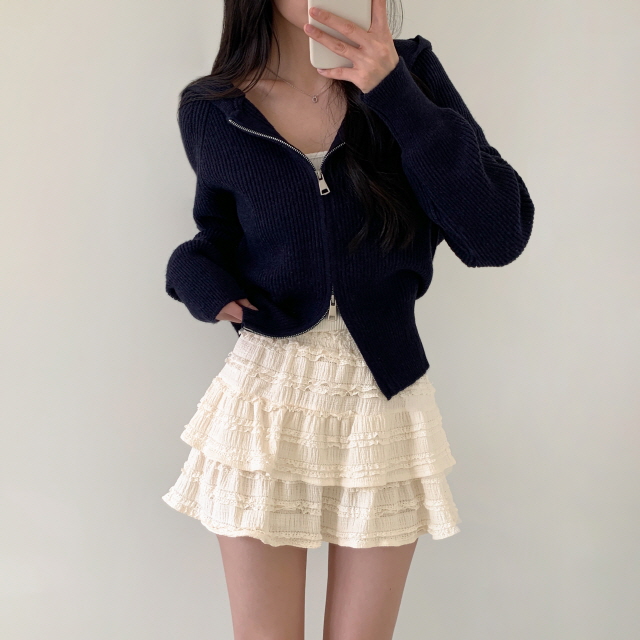[러블리무드💗] 델피나 레이스 올밴딩 치마 캉캉 프릴 플레어 미니 스커트