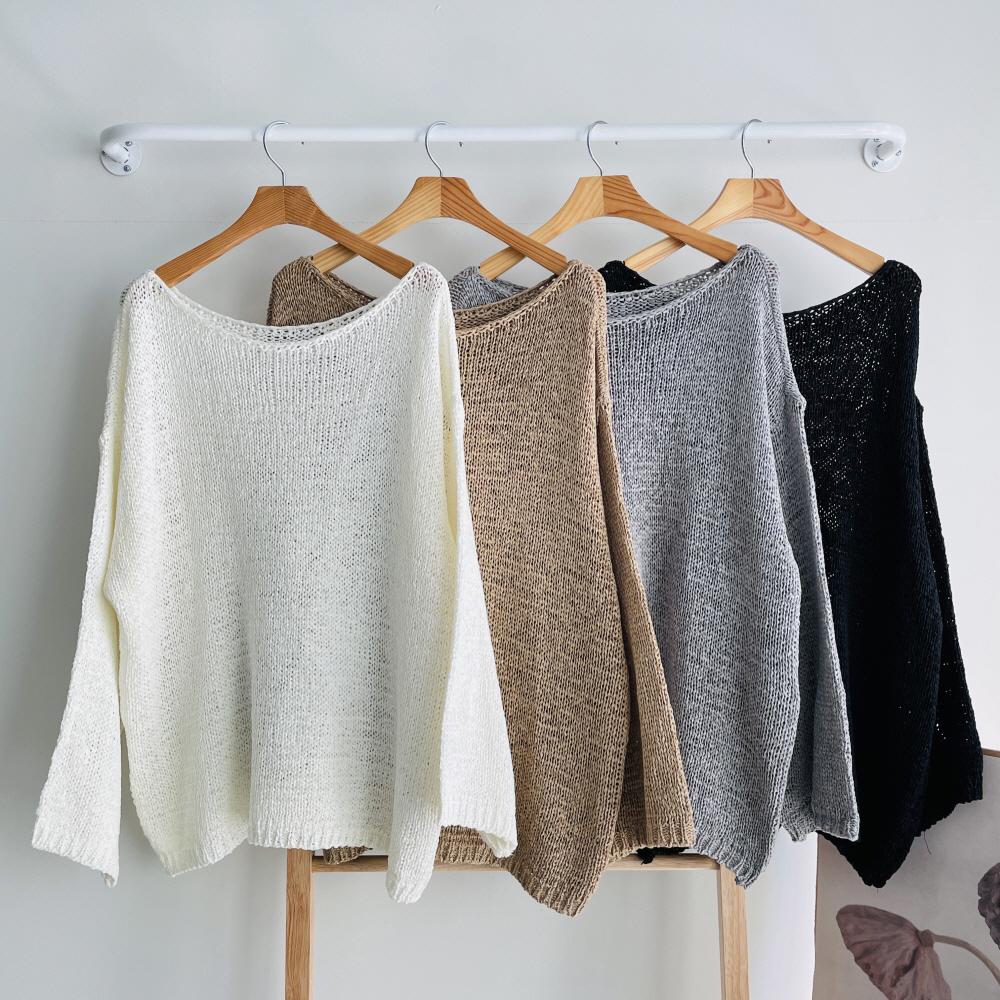 시스루 입술넥 오프숄더 빅사이즈 오버핏 니트 티셔츠