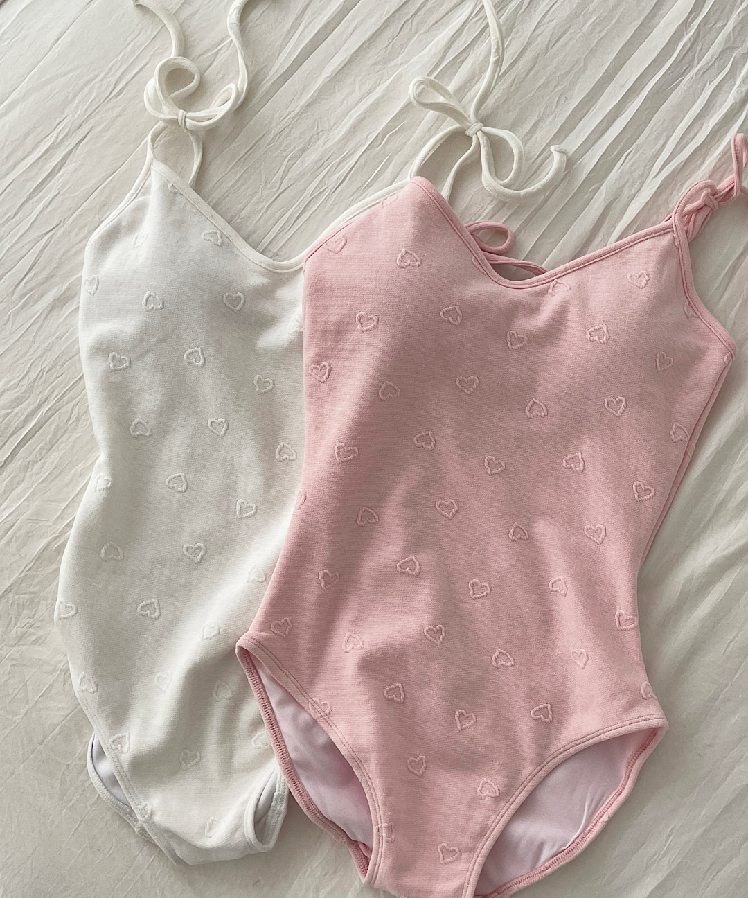 러블 하트 모노키니 수영복 휴양지 바캉스 비치웨어 백리스 끈조절 비키니(2col)