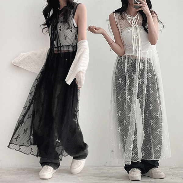 추구미 리본 레이스 레이어드 나시 롱원피스