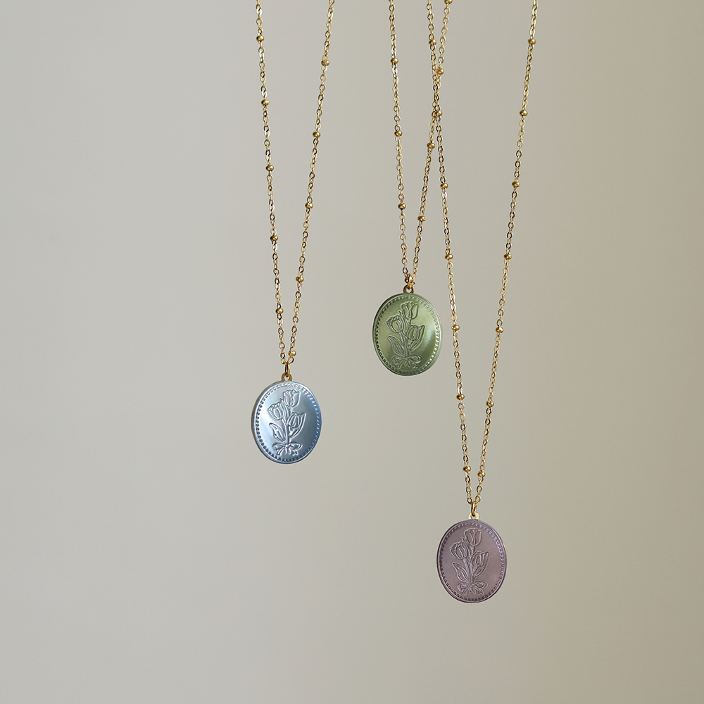 써지컬스틸 울금향 플라워 무늬 타원 자개 목걸이 3컬러