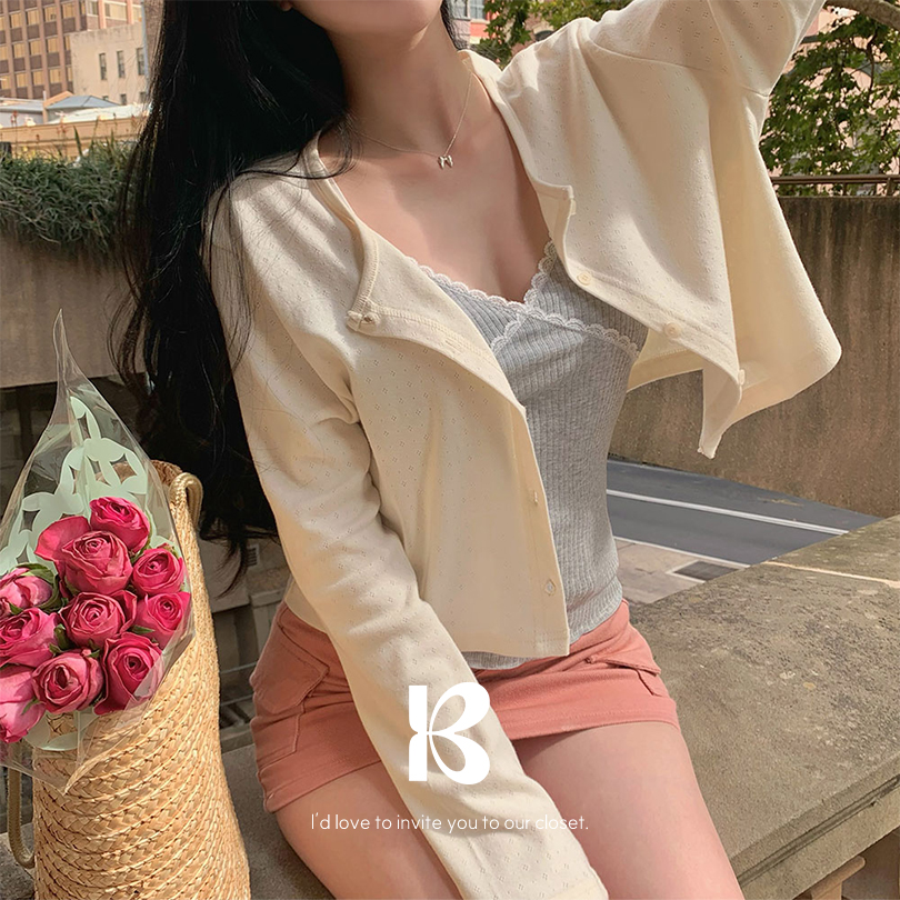 [MADE/여리핏!]플라워 펀칭 크롭 가디건