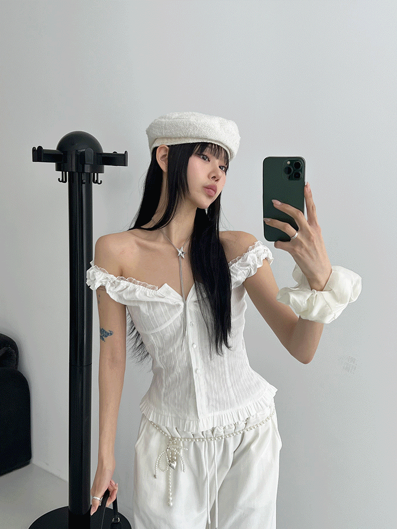 [주문폭주,82차 입고] 브라이트 2WAY 프릴 크롭 블라우스