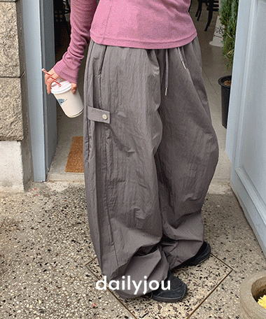 [MADE] 레벤 나일론 버튼 와이드 스트링 밴딩팬츠(공용)