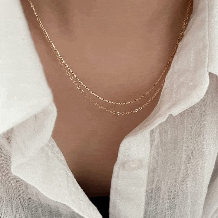 [14k골드필드] 박스체인 뱀줄 스키니 레이어드 목걸이