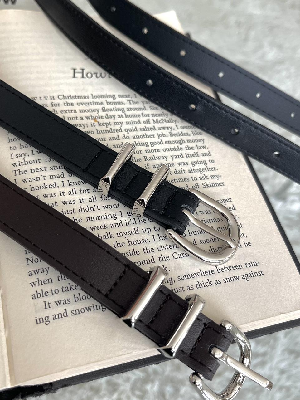 헤이즈 슬림 가죽 얇은 허리띠 캐주얼 레더 벨트 (2color)