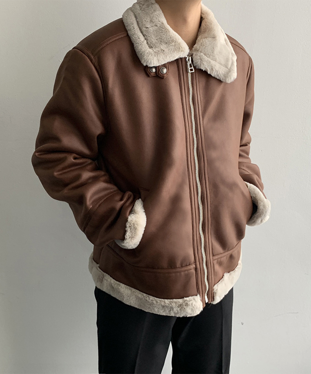 [남자친구 선물] 무스탕 가죽 레더 자켓 2color 도톰한 퍼 점퍼 두꺼운 어깨넓어보이는 털 스웨이드 갈색 블랙 남친룩 커플룩 댄디 데이트룩 머슬핏 남친