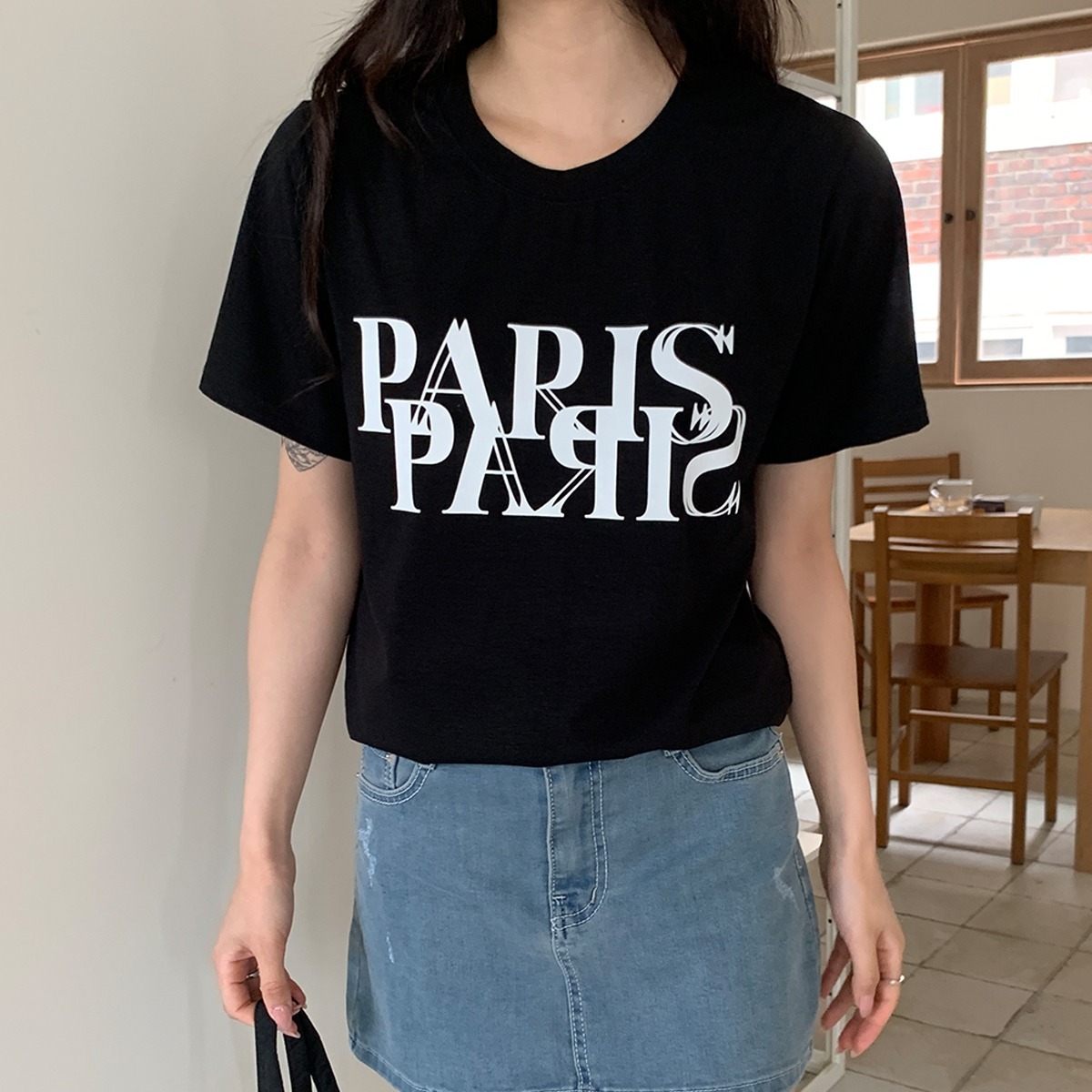 파리 레터링 캐주얼 여자 반팔 티셔츠