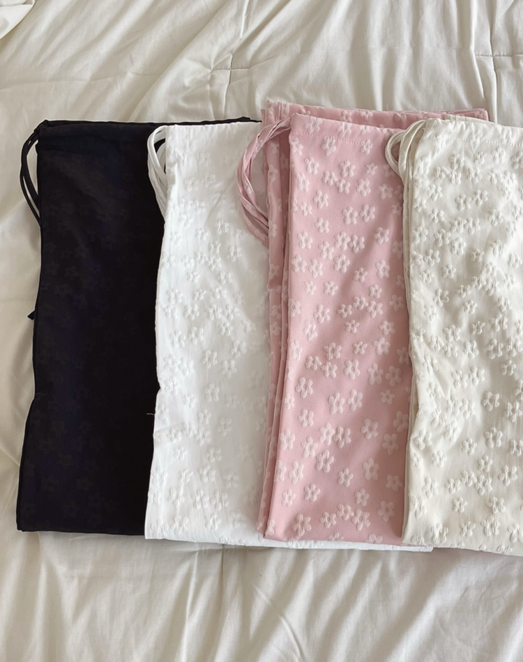 [1000장 돌파❤️] 엠보 꽃무늬 스트링 와이드 팬츠 플라워패턴 긴바지
