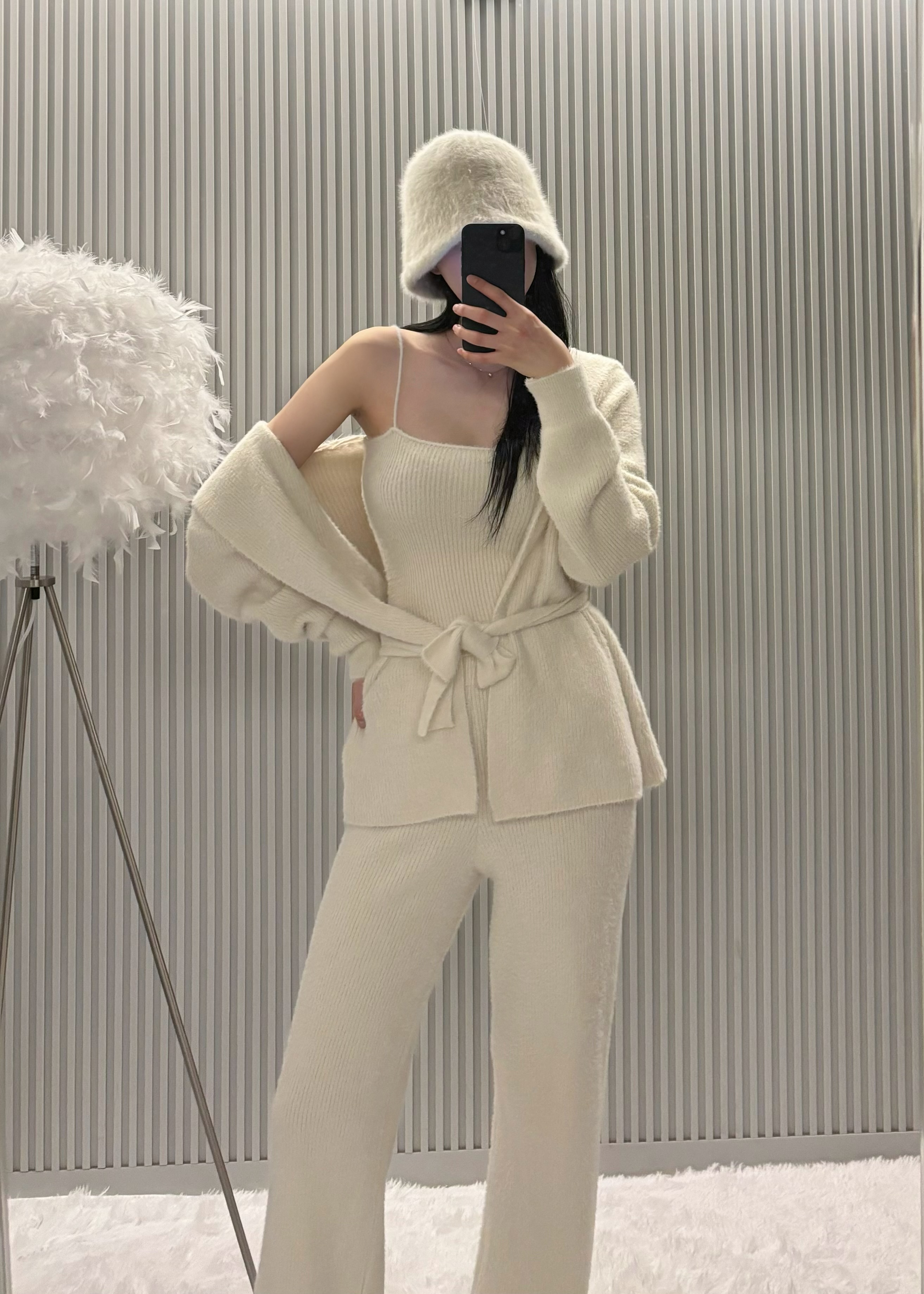 **당일배송/고퀄버전** (혜일리) 아이보리 앙고라 밍크퍼 쓰리피스 세트