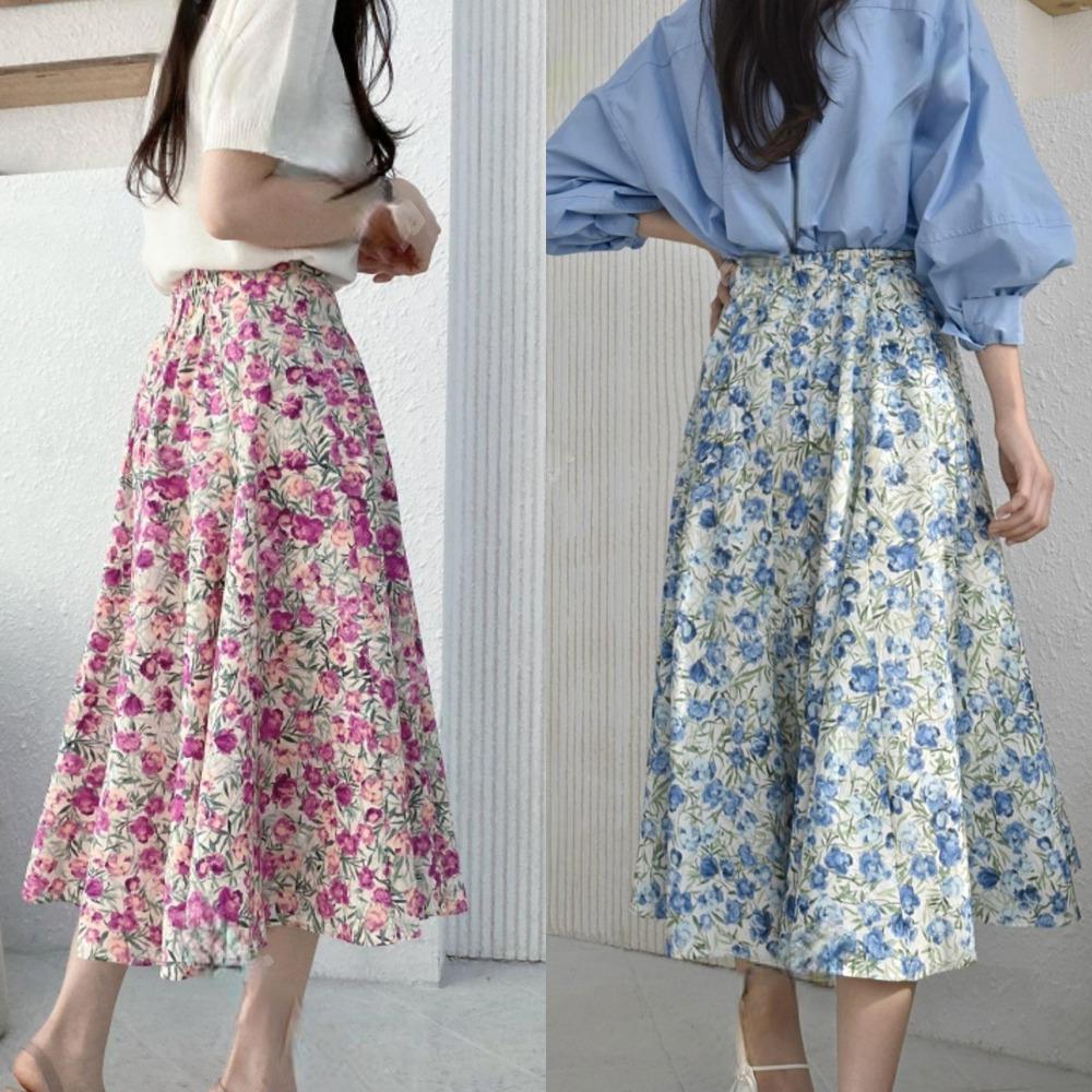 봄 꽃무늬 A라인 플레어 풀스커트 화사한 데이트룩 치마