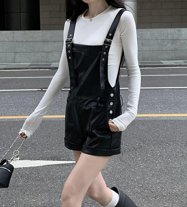 클럽 스트릿룩 2024유행 힙스타일 레더 멜빵 바지 점프 슈트