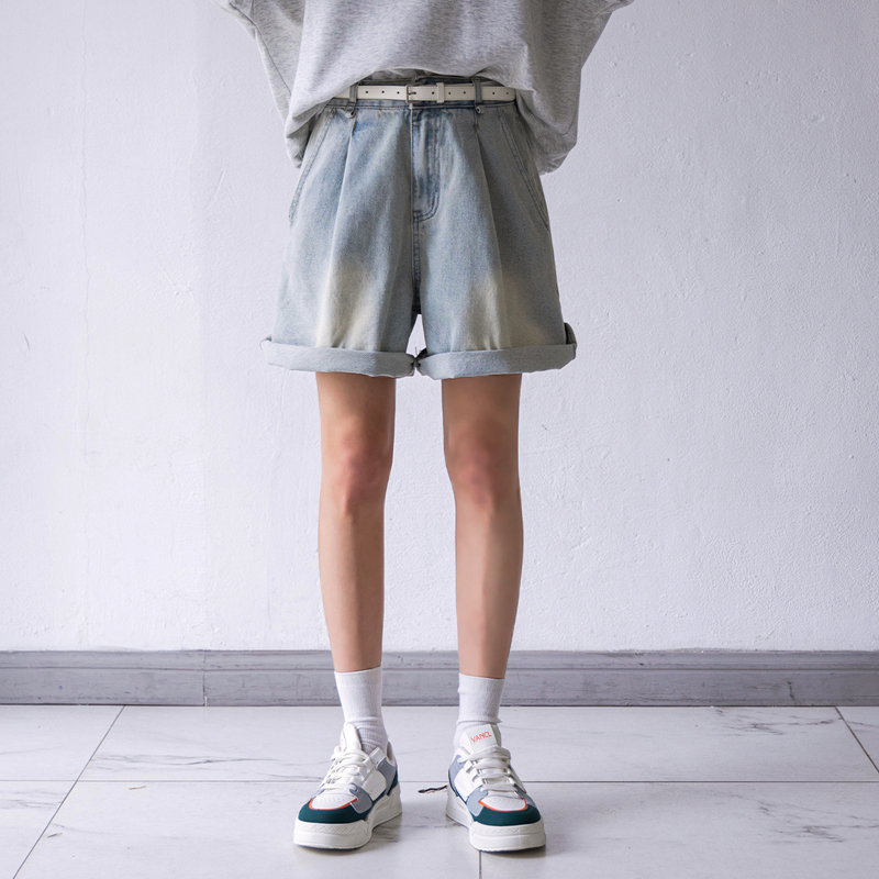 발로투르 비스코스 핀턱 4부 데님팬츠