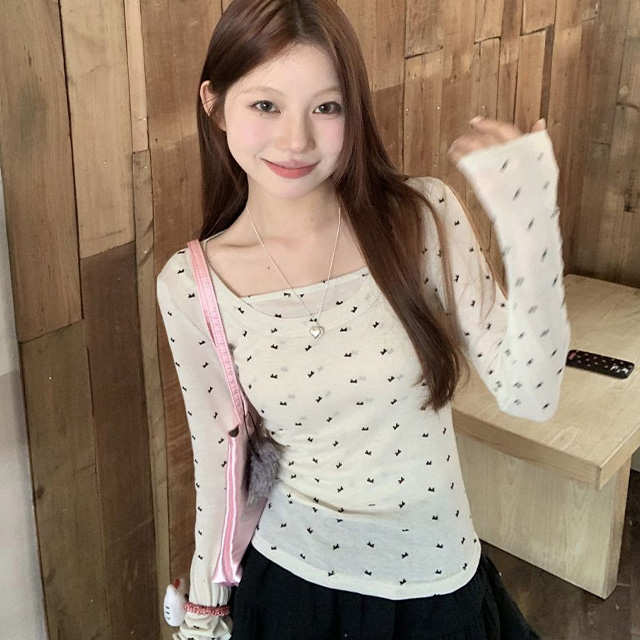 리본 크롭 나시 위에 티셔츠 레이어드 세트