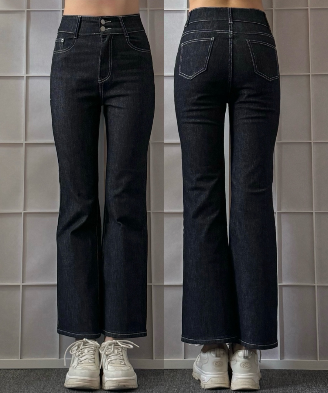 [총기장~109cm/키큰녀/숏.기본.롱] 이염없는 투버튼 하이웨스트 부츠컷 생지 바지 롱기장 논페이드 데님 3단 기장 팬츠 - pt / 2color