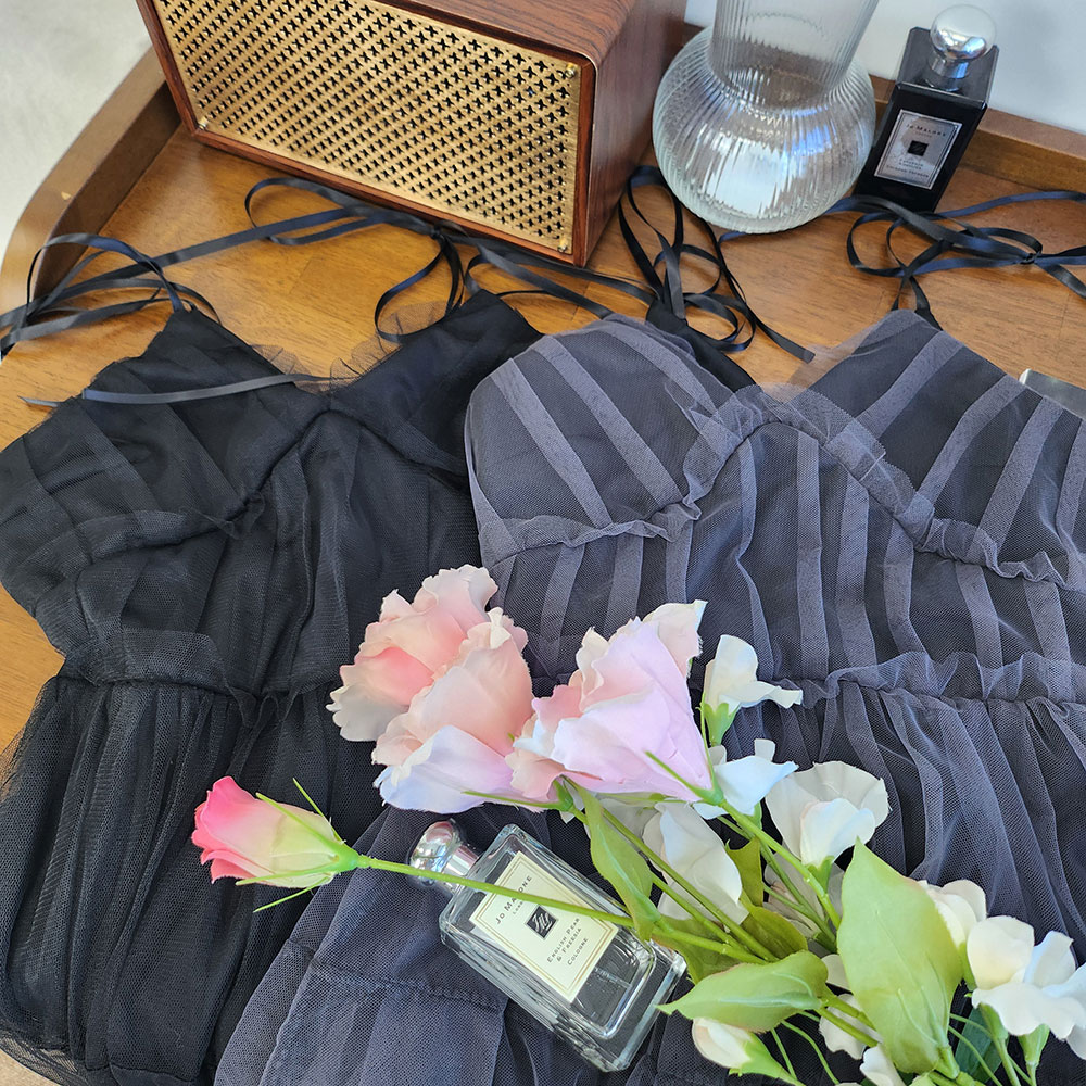 [당일발송] 3Color 발레코어 시스루 쉬폰 원피스 프릴 캉캉 레이어드 뷔스티에 나시 원피스*1118