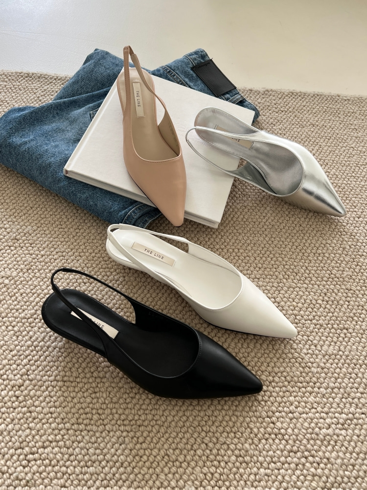 리파인 심플 스틸레토 슬링백 로우힐 플랫슈즈 3cm