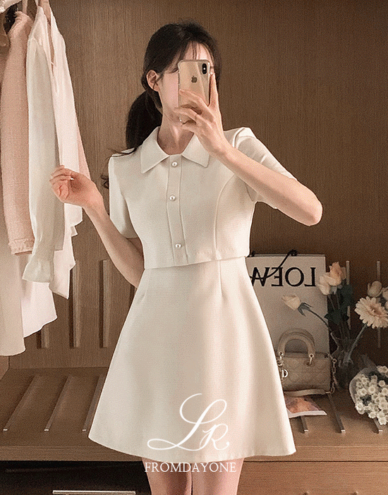 하객룩🖤Made)멜로무드 셋업 트위드 원피스(미니,롱VER/반팔/플레어/카라/데이트룩/하객룩/격식룩)